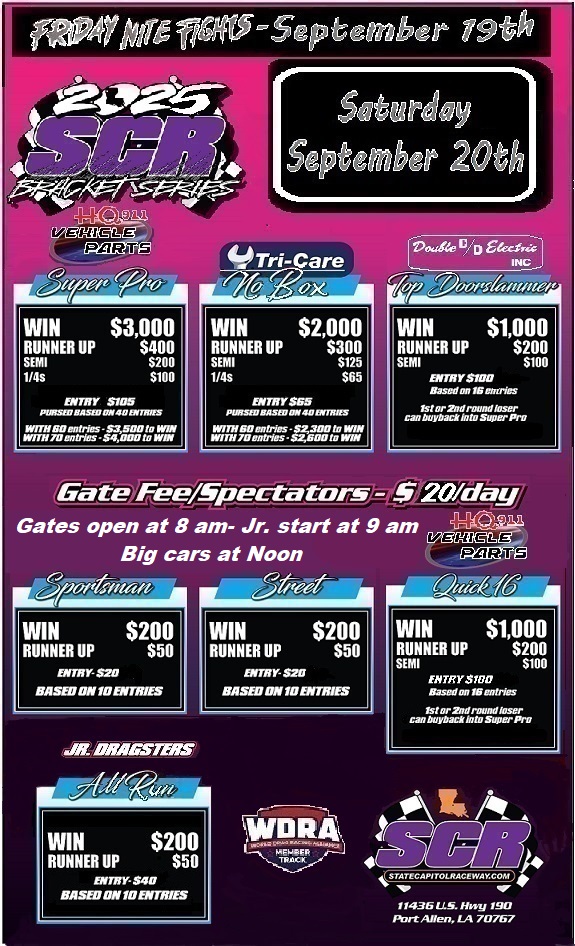 No Box/Box/Jrs/Street/Quick 16/Top Doorslammer/Sportsman